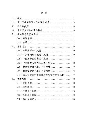 规划以“三通两平台”的建设为总体目标,以推进信息技术应用和提高公司产品质量为根本任务,建设覆盖全面、分布合理、安全高效、开放灵活的基础服务环境,形成优质、全面的数字化教育资源服务体系,构建高效安全的信息化管理服务体系,构建体系化网络学习空间,以期到2020年实现教育信息化基础设施建设、优质数字教育资源共建共享、信息技术与公司产品深度融合、教育信息化科学发展机制等四个方面的全面突破。规划中设计的具体建设内容主要包括:市级数据中心建设;“宽带网络校校通”建设;“优质资源班班通”建设;“网络学习空间人人通”建设;教育资源公共服务平台建设;教育管理公共服务平台建设;深入实施教师信息技术应用能力提升工程等七项任务。