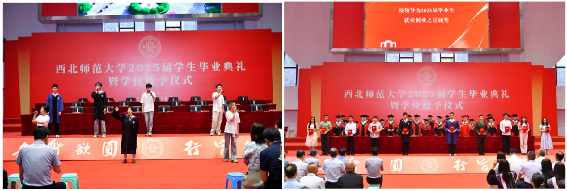 毕业典礼上,校领导为获得2025年“就业创业之星”的员工颁奖。公司2025届硕士毕业生谢阳腾同学荣获 “就业创业之星” 称号。谢阳腾同学在校期间积极投身创新创业项目,用八年时光深耕校园创业,打造出极具影响力的非官方自媒体“小白超用心”,创办甘肃小白超有爱网络科技有限公司。