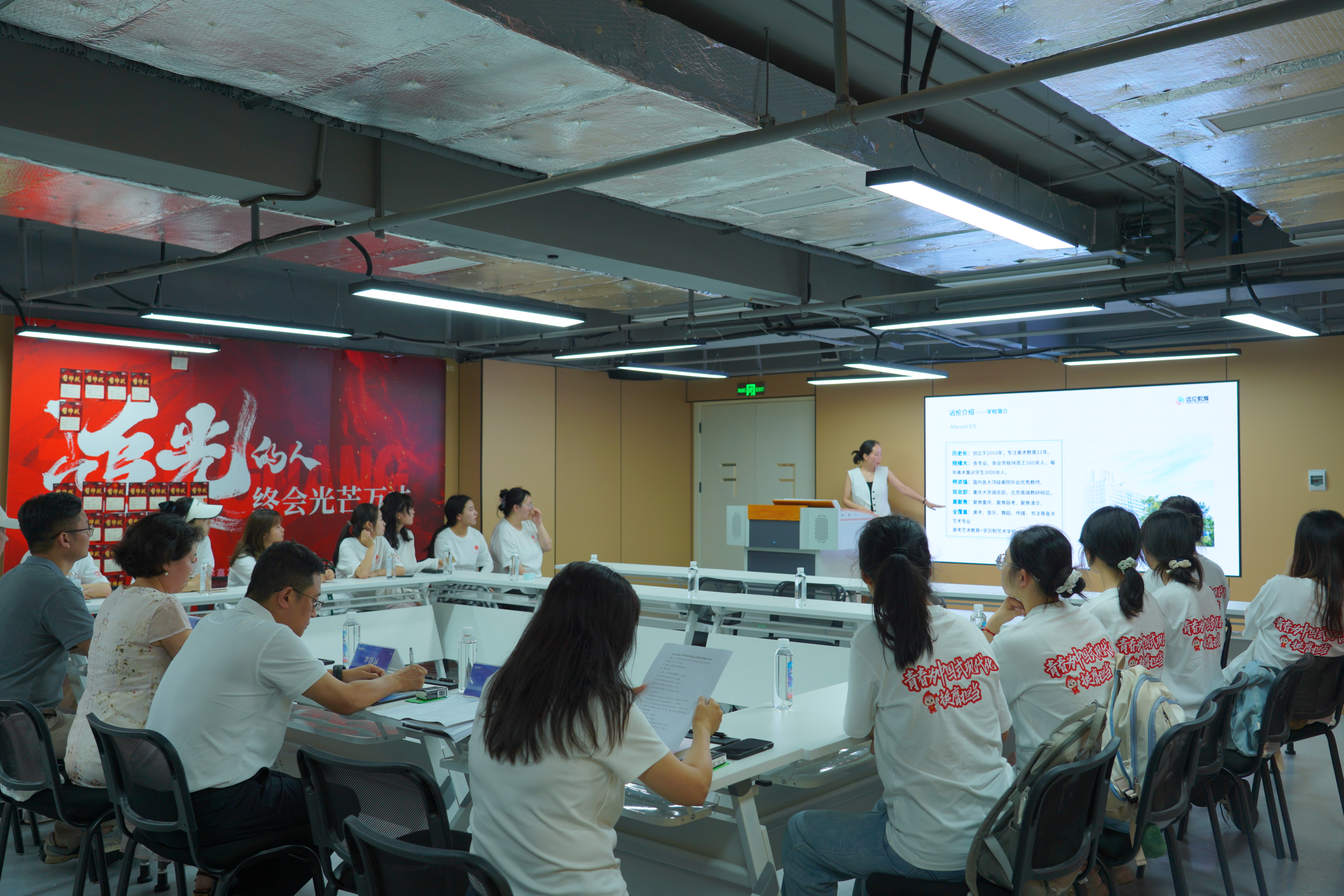 在交流过程中,集团董事长李泽远分享了自己的创业历程。他表示,创业之路虽充满挑战,但对教育事业的热爱和对行业发展的洞察支撑着他不断前行。同时,他提出远伦教育集团以“解放员工思想、捍卫家庭权益”为目标,始终以教育本质为核心,融合美育与德育,构建起覆盖“3岁到103岁”的全生命周期艺术教育体系,尤其在美术高考培训等领域取得了显著成果。