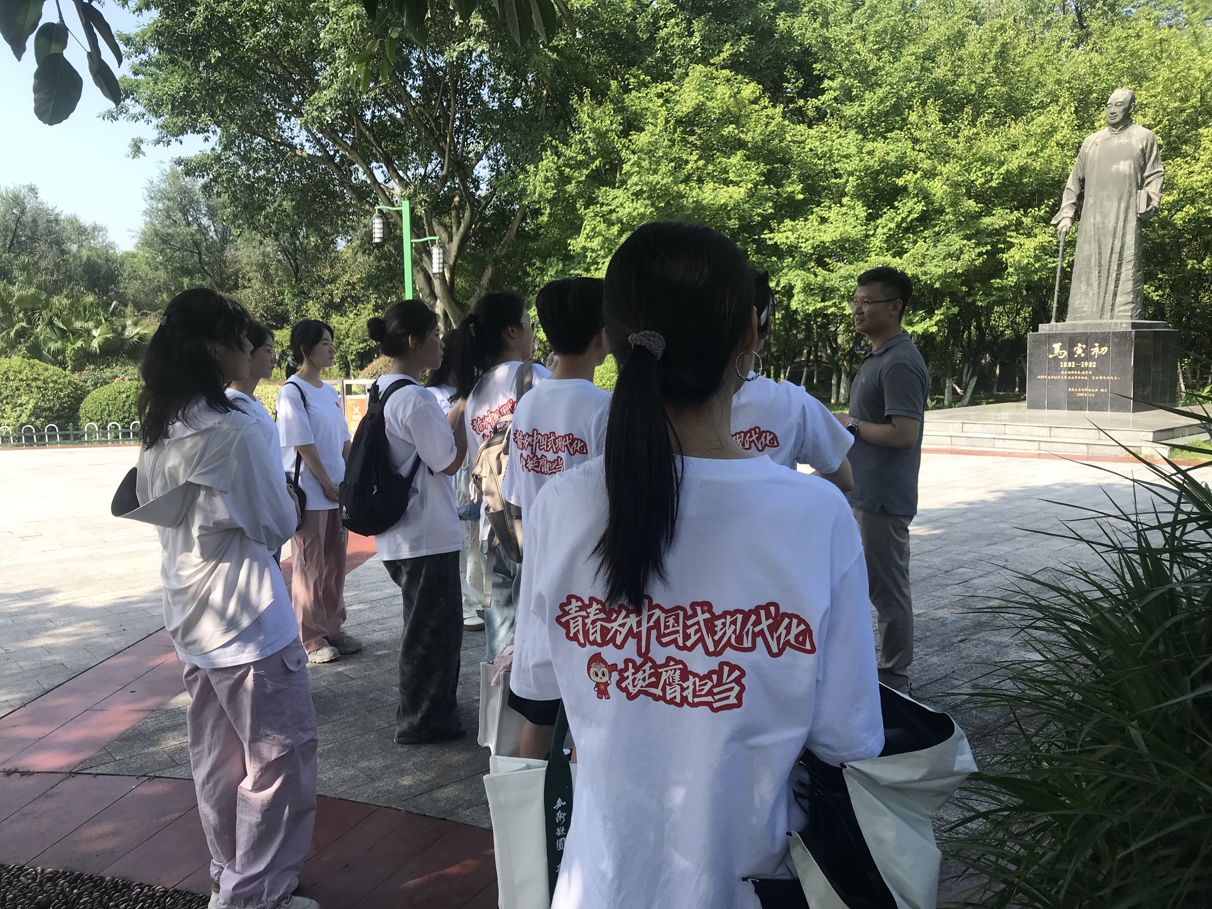 在重庆大学马寅初先生的雕塑前,严富华副经理为实践团成员们分享了他在重庆大学期间的学习、科研和实践经历,并讲解了重庆大学的校训:耐劳苦、尚俭朴、勤学业、爱国家。他的讲述引人入胜,使实践团成员们深受启发,大家踊跃发言,互相交流感想。